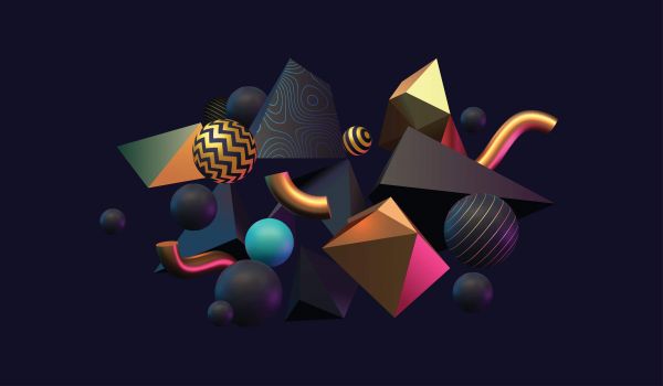 Différents types de figures en 3D, notamment des triangles et des boules.