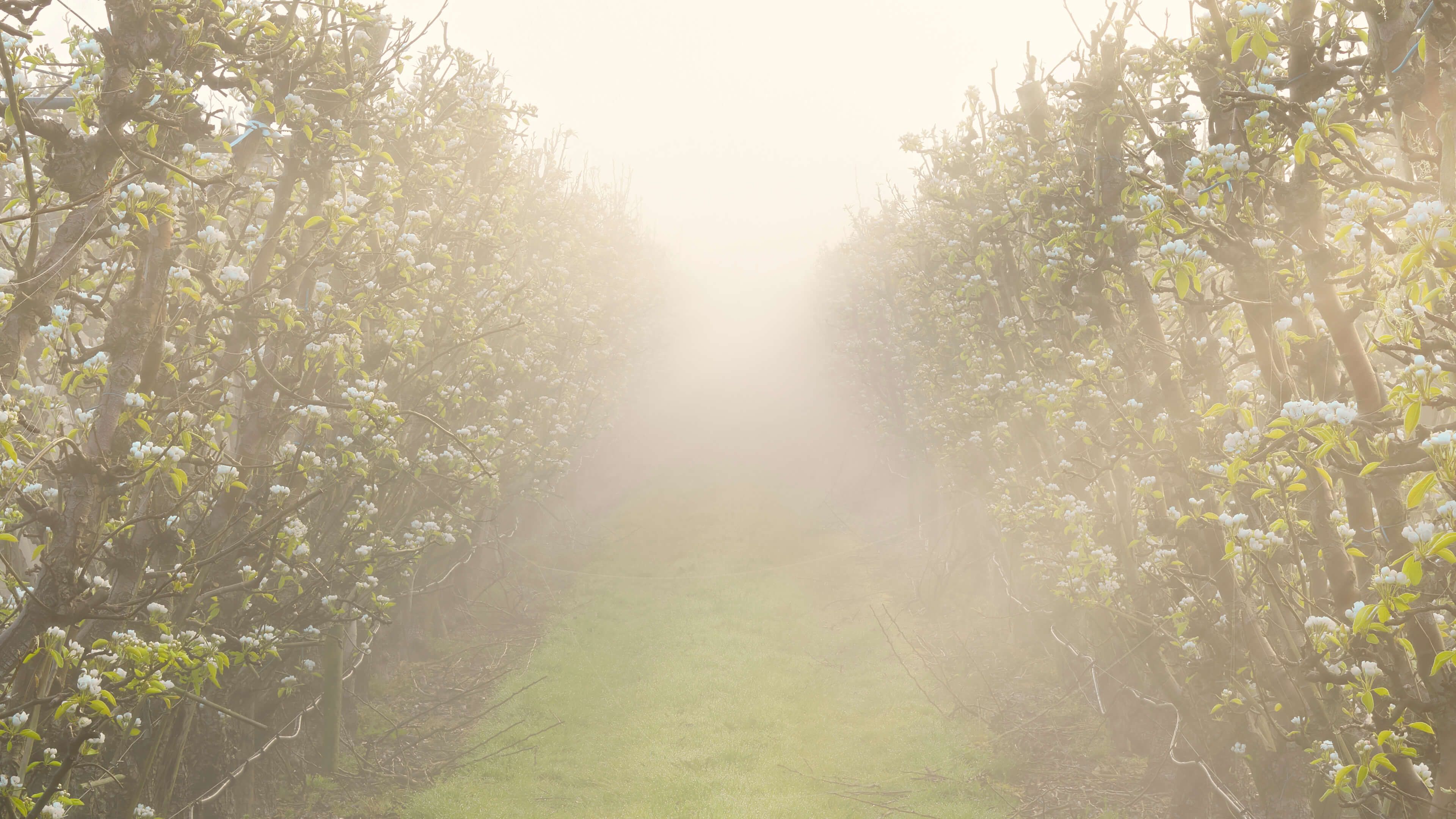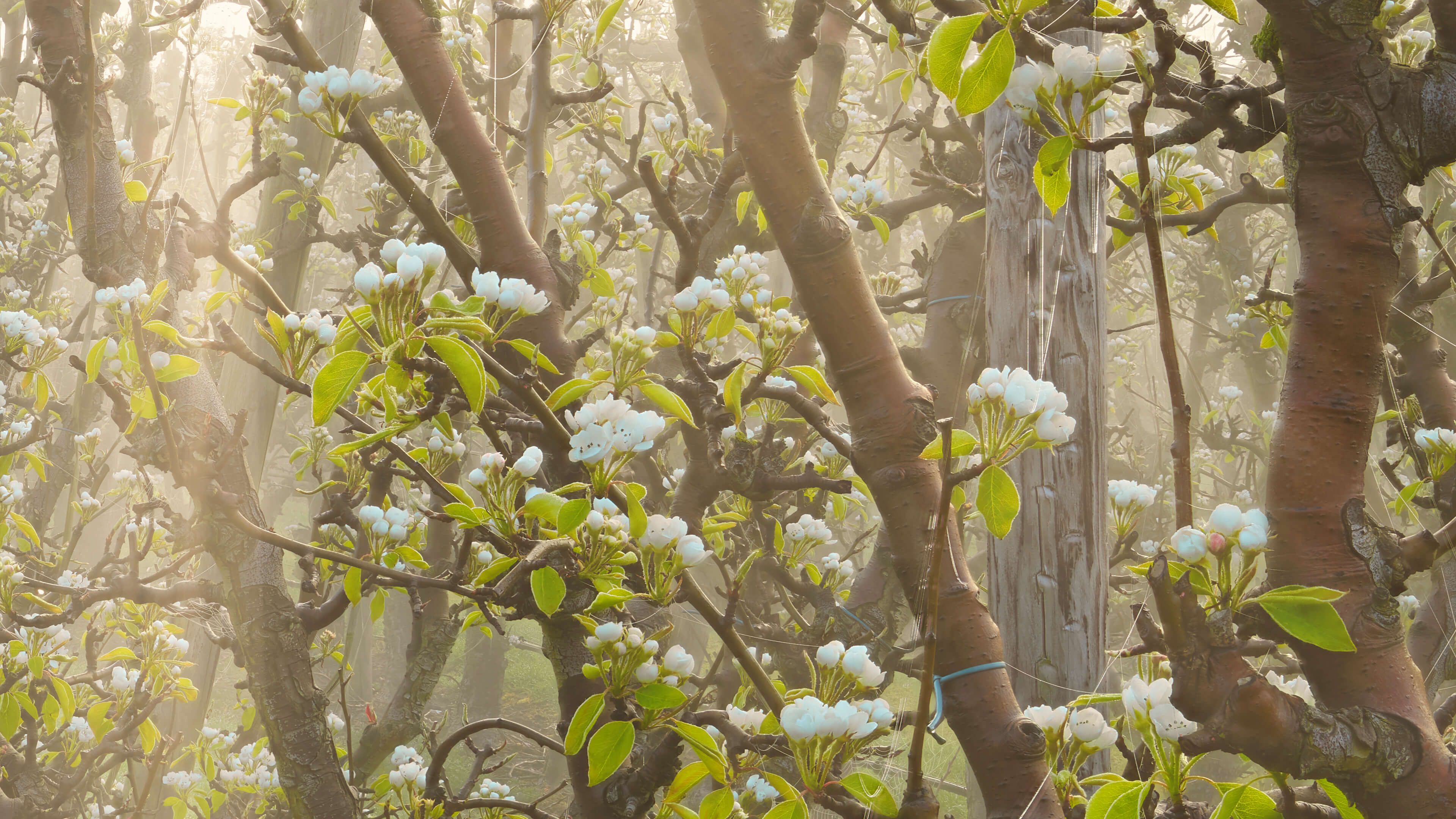 Papier Peint Panoramique Fleur de poirier dans la brume
