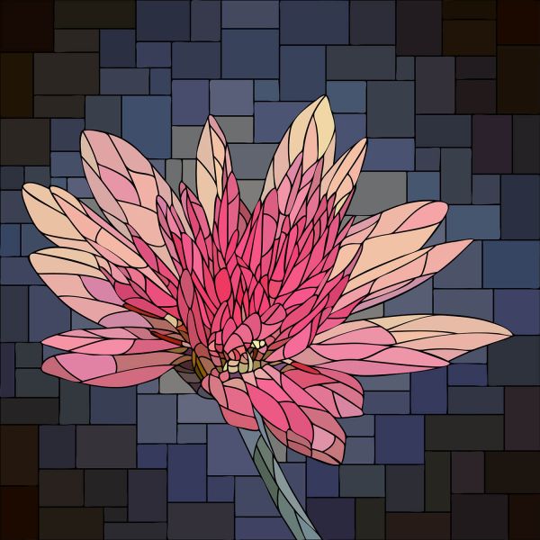Une fleur rose et colorée qui vient de commencer à fleurir. Le fond bleu fait ressortir encore plus la fleur.