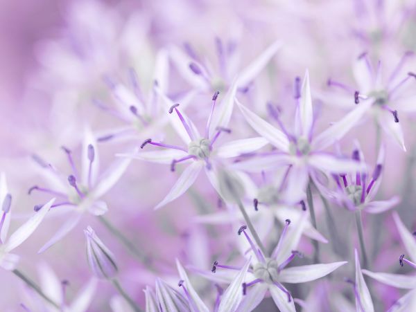 Gros plan sur des fleurs d'allium dans une couleur violet clair. Combinez ce papier peint dans le salon, par exemple.