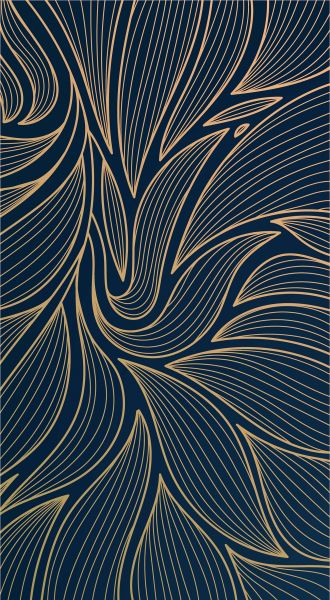 Papier peint d'un imprimé floral avec des feuilles sur un fond bleu dans le style art déco. Ajoutez de l'ambiance à votre intérieur avec ce papier peint.