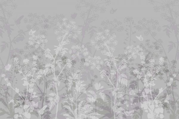 Une douce composition de silhouettes de fleurs et de feuilles, raffinées en couches de couleurs pastel transparentes. Les papillons et autres détails délicats ajoutent une touche ludique à l’atmosphère sereine et organique.