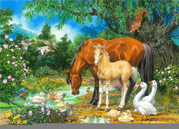 Foal and Mare by the Stream