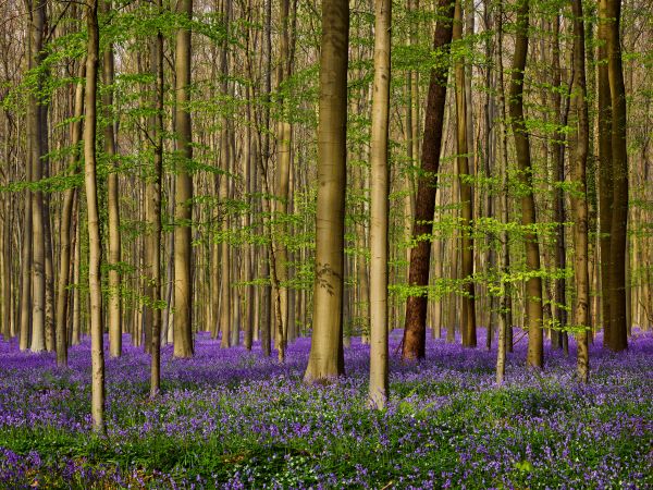 Forêt avec jacinthes des bois. Faites entrer la forêt dans votre maison avec ce papier peint.