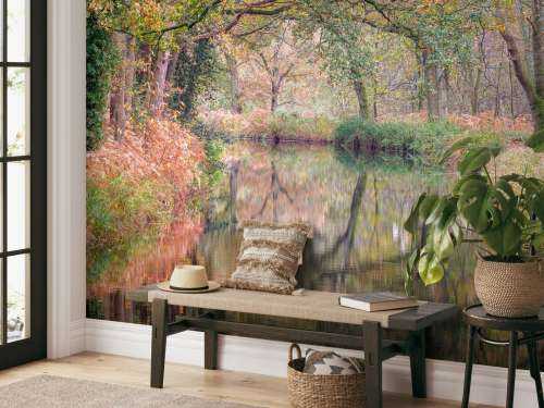 Forêt colorée au début de la saison d'automne. Avec ce papier peint, vous faites entrer la nature dans votre maison.