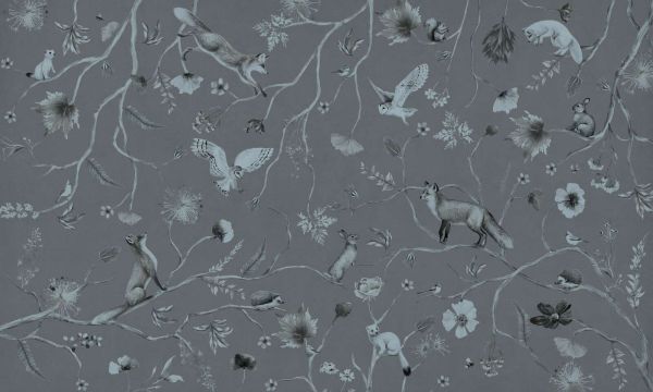 Ce design discret capture le silence de la forêt au crépuscule. Parmi les branches gracieuses et les éléments floraux subtils, nous découvrons des renards, des belettes, des hiboux, des hérissons, des lapins et des oiseaux chanteurs, intégrés de manière naturelle dans un motif raffiné. Le fond gris-vert donne à l'ensemble une atmosphère fraîche, presque méditative. La flore se compose de feuilles superposées, de petites fleurs et de capsules de graines séchées dans des tons gris et blancs doux, qui se fondent harmonieusement avec l'arrière-plan. Les animaux sont illustrés de manière réaliste et tendre en nuances de gris avec des touches subtiles. Ce design ressemble à un chuchotement visuel - calme, rêveur et plein de détails cachés. Parfaitement adapté à un intérieur minimaliste scandinave ou naturellement moderne, où les couleurs et les textures douces prédominent. Pensez à des combinaisons avec du bois clair, de la céramique mate, des tissus en lin et des accents en pierre naturelle. Dans une chambre de bébé ou d'enfant, ce design a un effet apaisant et relaxant, sans perdre son caractère ludique. Grâce à sa palette de couleurs discrète, ce design est polyvalent : derrière un lit, dans un coin lecture, sur un mur dans le couloir ou dans un espace de travail calme. Il apporte une tranquillité visuelle sans être ennuyeux, grâce aux animaux ludiques et aux lignes élégantes. Un design qui équilibre parfaitement le détail et la simplicité, et brille par sa beauté douce et intemporelle - pour ceux qui aiment la nature dans sa forme la plus silencieuse.