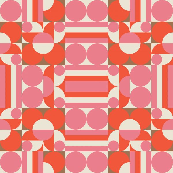 Papier peint de cercles, rectangles et carrés dans des couleurs pastel. Combinez-les dans la chambre à coucher.