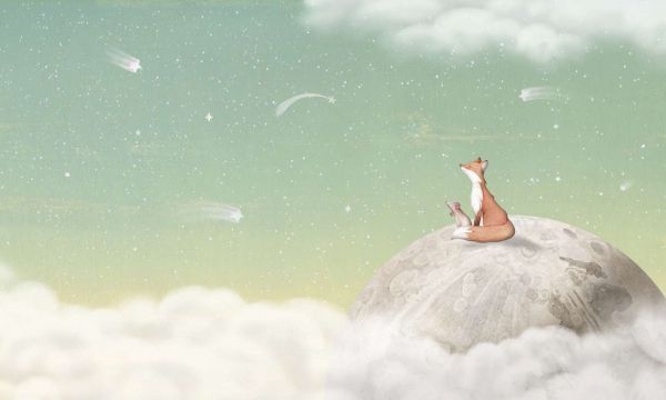 Papier Peint Panoramique Fox on the Moon - Green