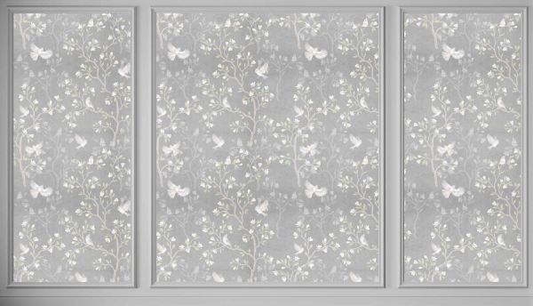 Une composition sereine de plantes monochromes et de formes douces d'oiseaux orne ces panneaux. Les tons gris doux suggèrent le calme de l'aube, comme si chaque oiseau et chaque feuille étaient baignés dans la douce lumière d'un matin brumeux.