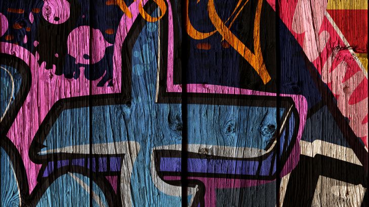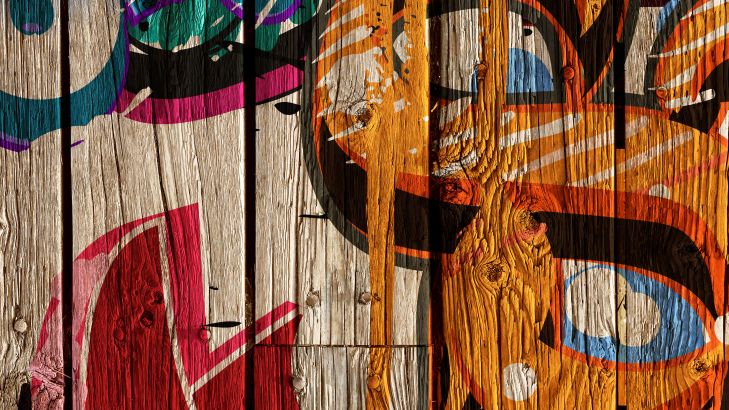 Cool graffiti avec des lettres sur du bois. Combinez ce papier peint dans votre maison et créez immédiatement plus d'atmosphère dans votre maison.