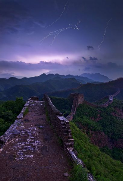Papier peint de la Grande Muraille. Un orage en arrière-plan rend l'image spectaculaire.