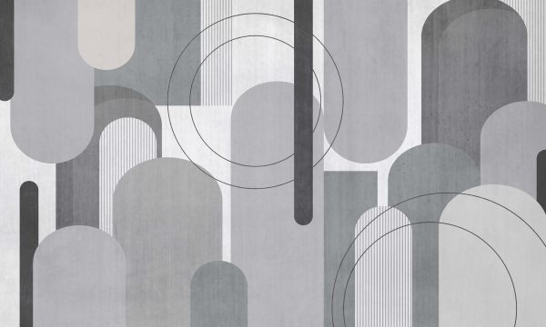 Les transitions du gris clair au gris foncé, ponctuées de contours circulaires et de lignes droites, créent une dimension mystérieuse. Ce motif joue avec la perception et la profondeur, ce qui crée une expérience visuelle intrigante.