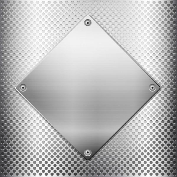Gros plan d'une grille métallique avec une plaque carrée en argent.