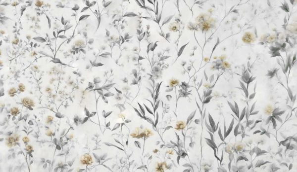 Ce motif léger joue avec des nuances de blanc éclatant et des coups de pinceau raffinés, faisant ressortir subtilement les fleurs et les feuilles. Le fond frais reflète la lumière naturelle et crée une atmosphère ouverte et claire, parfaite pour les intérieurs modernes comme classiques.