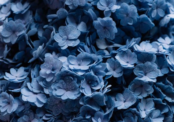 Un gros plan d'hortensias bleus. Combinez ce papier peint dans la salle à manger, par exemple.