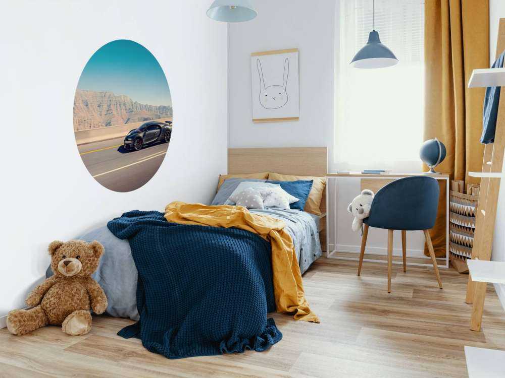 Cette image dégage exclusivité et puissance, parfaite pour les amateurs d'intérieur qui aiment le luxe moderne et l'élégance sportive. Un grand format d'impression serait magnifique dans un intérieur minimaliste aux teintes sombres, avec des détails industriels et des meubles en cuir de haute qualité. La profonde couleur noire de la Bugatti peut être joliment associée à des accents métalliques et à un environnement subtilement éclairé pour renforcer le drame de l'image.