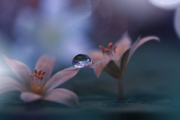 Papier peint de Immortal Love. Deux fleurs roses avec une goutte d'eau entre elles.