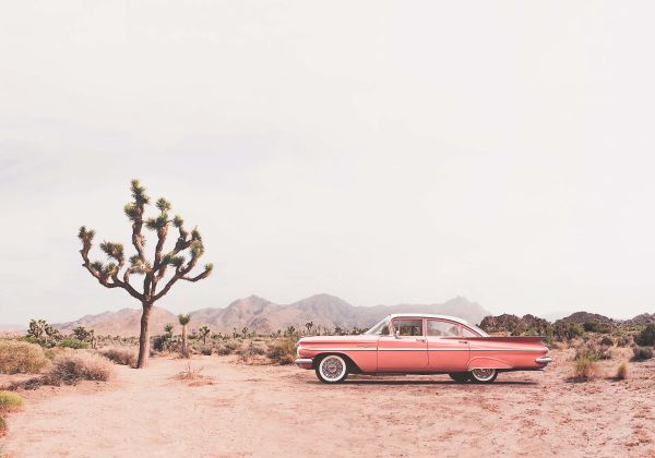 Une image d'une vieille voiture dans le désert. Combinez cette photo dans la chambre à coucher, par exemple.