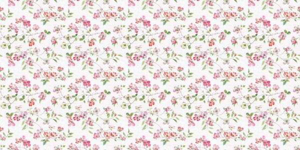 Motif léger de branches de fleurs en style aquarelle, avec des nuances de rose, rouge et vert sur une structure de lin blanc doux. Un motif floral ludique et raffiné plein de sensations printanières.