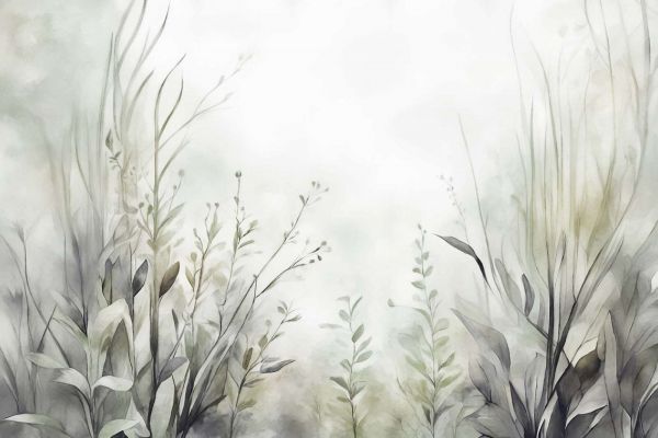 Un design aquarelle revigorant avec des teintes vertes douces, combiné avec des couleurs sable et crème claires. Les gracieuses brins d'herbe et les fines feuilles apportent une apparence naturelle et fraîche, idéale pour un intérieur rangé et accueillant.