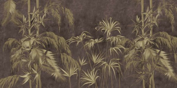 Des tons sombres et clairs se mélangent dans ce design élégant, mettant en valeur l'élégance des feuilles de palmier contre un fond profond et fumé. Cela ressemble à une danse d'ombres et de lumière, créant une ambiance apaisante.