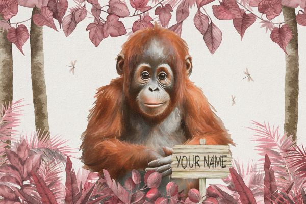Papier Peint Panoramique Jeune orang-outan dans la jungle rose