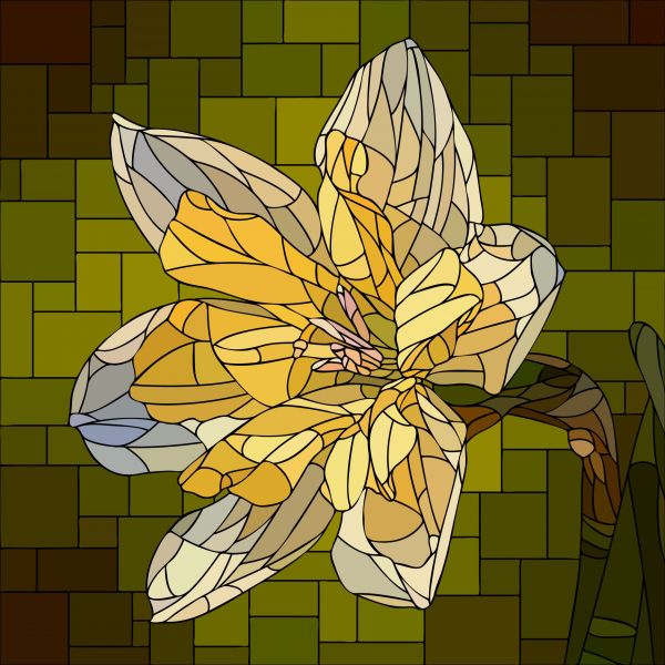 Une jonquille jaune en fleur avec un effet de mosaïque. Combinez ce papier peint dans votre maison pour encore plus d'ambiance.
