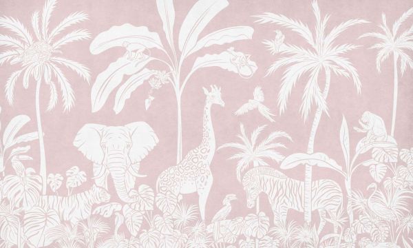 Papier Peint Panoramique Jungle Monochrome - Rose