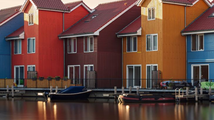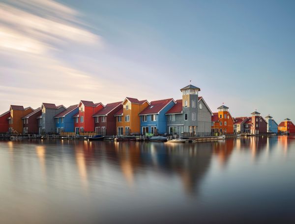Reitdiep à Groningen au coucher du soleil.