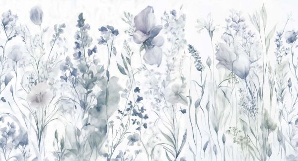 Frais, calme et raffiné – ce champ de fleurs bleues apporte sérénité dans chaque espace. Le style aquarelle laisse des teintes comme le bleu glacier, l'indigo et le violet doux se fondre les unes dans les autres, avec des formes de fleurs délicates qui évoquent un sentiment de silence et de fraîcheur.