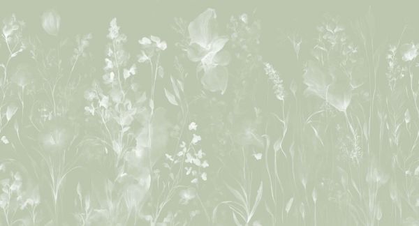 Une interprétation terreuse et raffinée de fleurs aquarelles, où des teintes vert olive et vert mousse se marient avec des couleurs crème douces. Cette variante dégage un caractère frais et en même temps apaisant.
