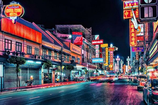 Papier peint panoramique - La vie nocturne dans le Chinatown néon.