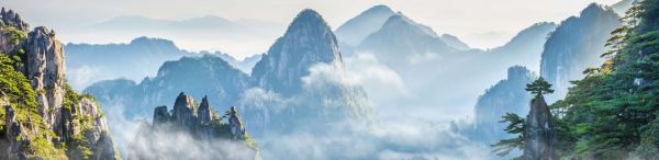 Paysage du Mont Huangshan (Montagnes jaunes). Site du patrimoine mondial de l'UNESCO. Situé à Huangshan, Anhui, Chine.