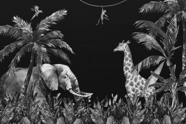 Papier Peint Panoramique Les animaux noirs et blancs dans la jungle