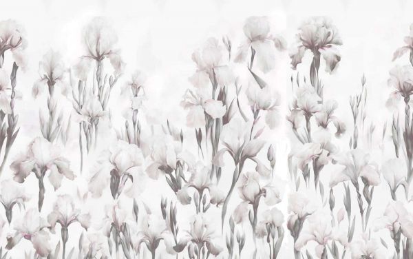 Des tons de gris doux et des coups de pinceau subtils donnent aux iris de ce design une apparence délicate et raffinée. Les effets aquarelle créent une composition légère et intemporelle.