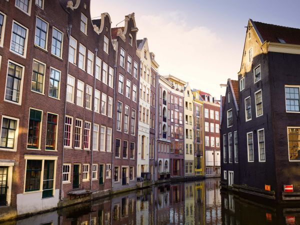 Papier Peint Panoramique Les maisons d'Amsterdam sur le canal