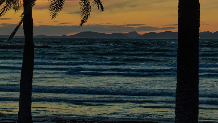 Papier Peint Panoramique Les palmiers au coucher du soleil
