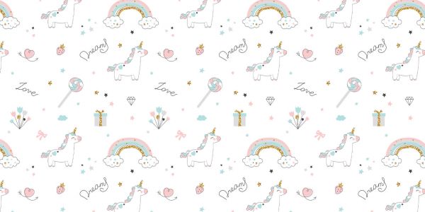 Papier Peint Panoramique Licornes, arcs-en-ciel et paillettes
