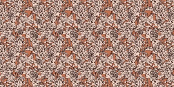 Papier Peint Panoramique Lignes Botaniques en Terre Cuite