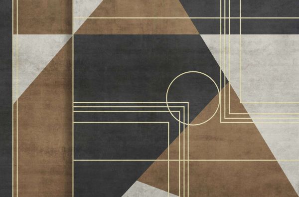 Ce design dégage une élégance moderne avec des influences claires de la période art déco. Des lignes droites et des formes géométriques telles que des cercles, des triangles et des rectangles sont harmonieusement combinées avec une palette de couleurs raffinée de noir profond, de brun chaud et de gris doux. Les fines lignes dorées forment un contraste subtil et donnent à l'ensemble une apparence luxueuse. Dans un intérieur moderne, ce design apporte une tranquillité visuelle grâce à sa composition symétrique et bien pensée. Pensez à une combinaison avec des meubles noirs ou en bois foncé, des accents en laiton et des tissus doux comme le velours ou le lin dans des tons terreux chauds. Dans un espace inspiré de l'art déco, ce design se sent également parfaitement à l'aise – renforcez l'effet avec des éléments en vitrail, des coussins en velours et des miroirs décoratifs avec des bords dorés. L'utilisation des couleurs est neutre et intemporelle, ce qui le rend facile à combiner avec des teintes chaudes ou froides. La texture des surfaces rappelle le béton et les surfaces patinées, ce qui ajoute du caractère sans être trop chargé. Parfait pour les espaces où vous recherchez une combinaison de luxe et de design épuré : un salon élégant, un bureau à domicile moderne ou même un hall d'hôtel. Grâce à la base de couleurs apaisantes avec des accents dorés, ce design est également parfaitement adapté comme point focal sur un mur, en combinaison avec des murs unis et un éclairage moderne.