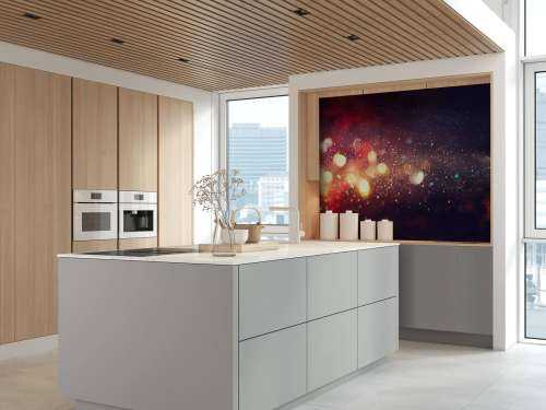 Des lumières scintillantes sur un fond sombre. Comme le fond est sombre, vous pouvez facilement combiner ce papier peint dans presque toutes les pièces.