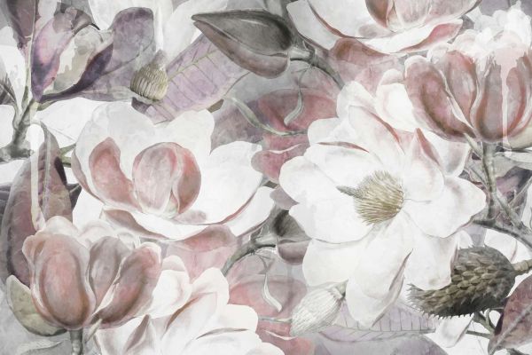 Ce design combine la splendeur naturelle des magnolias avec un style aquarelle raffiné, créant un bel équilibre entre détails et douceur. Les grands pétales fluides aux couleurs pastel délicates, comme le blanc, le rose et une touche de gris ou de bleu doux, se démarquent subtilement. Le motif capture l'essence de la nature et évoque une atmosphère sereine et apaisante. Les textures complexes et les tons d'ombre clairs ajoutent une couche de profondeur, tandis que le fond doux crée un tout harmonieux.