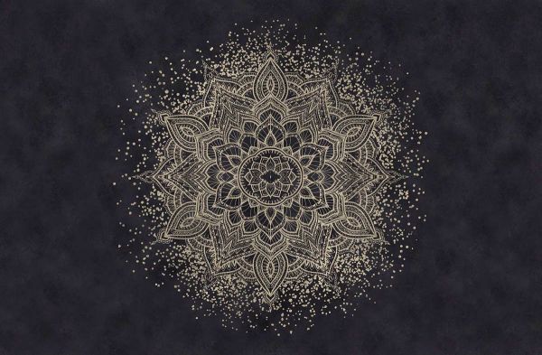Papier Peint Panoramique Mandala doré scintillant - marine foncé