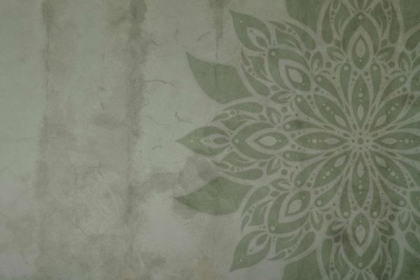 Ce motif de fleur mandala verte sur un fond usé par le temps apporte une atmosphère rustique et sereine à n'importe quelle pièce. Les tons verts du mandala et les textures subtiles du fond usé par le temps créent une ambiance naturelle et apaisante, parfaite pour les styles d'intérieur bohème et campagnard. Le motif détaillé du mandala dégage un sentiment de calme et d'harmonie, tandis que le fond usé par le temps ajoute un caractère vintage et rustique au design.
