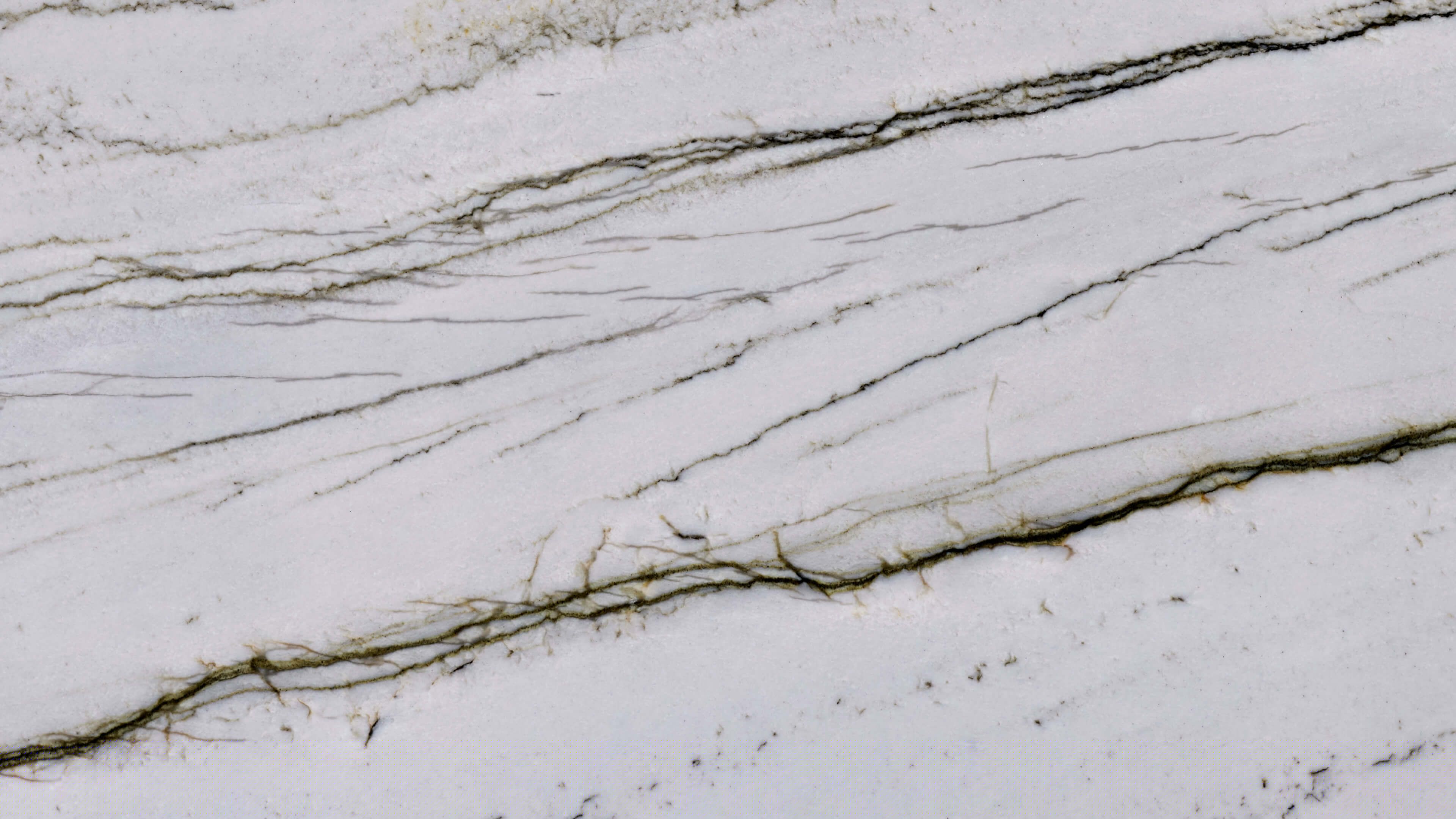 Marbre blanc avec des lignes noires. Les lignes du marbre sont clairement visibles, ce qui rend ce papier peint encore plus réaliste.