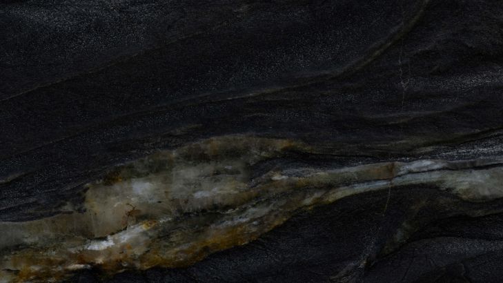 Marbre noir avec relief. En raison de la couleur sombre du marbre, ce papier peint peut être combiné avec d'autres papiers peints, par exemple dans la cuisine.