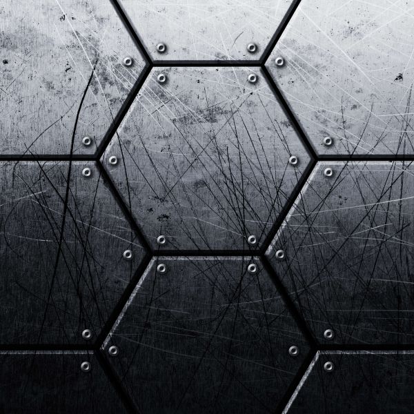 Papier peint d'une plaque métallique hexagonale avec des rivets. Combinez ce papier peint dans votre maison.