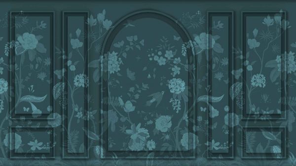 Une illustration sophistiquée de la splendeur florale, représentée dans des tons bleus profonds sur un fond sombre, crée un sentiment de mystère et d'élégance.