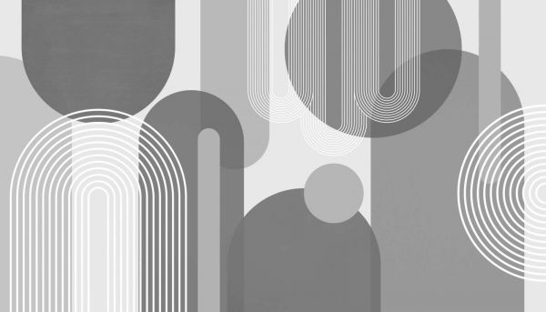 Un jeu de tons gris et de lignes blanches crée une symétrie structurée dans ce design moderne. La variation des formes et la précision des lignes créent une expérience visuelle à la fois calme et intrigante.