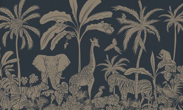 Papier Peint Panoramique Monochrome Jungle - Blue Vintage